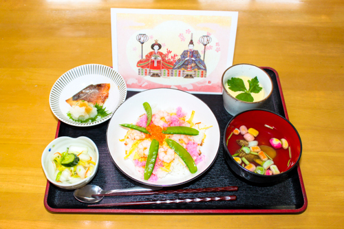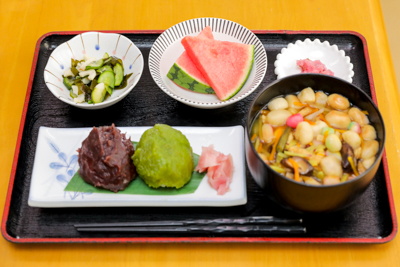 昼食例:栗ごはん・さんまの塩焼き・青菜のお浸し・りんご・豚汁